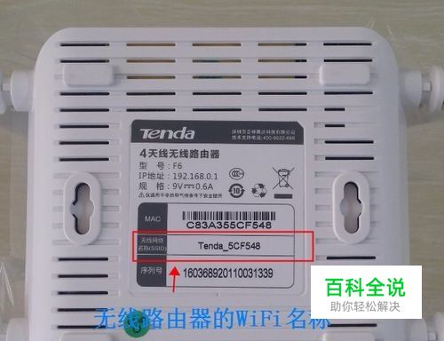 2、在路由器的背面有一个标签,看一下WiFi名是多少,如图: