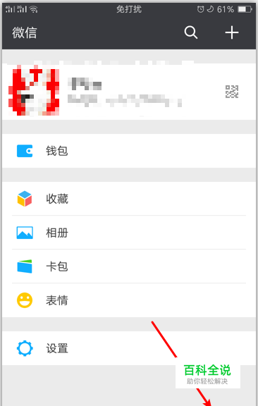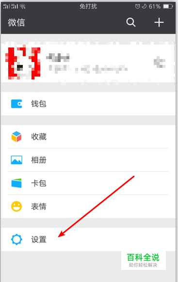 在“我”的页面,如图中箭头所示,点击“设置”按钮,进入“设置”页面。