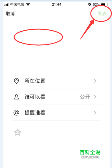 5、在文本框中编辑文字进行发送即可,就发布了一条只有文字的朋友圈说说