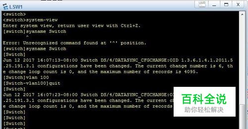 进入系统视图,新建VLAN 100 <HUAWEI> system-view //进入系统模式 [HUAWEI] sysname Switch //交换机重命名 [Switch] vlan 100 //创建 vlan [Switch-vlan100] quit //退出 vlan 模式