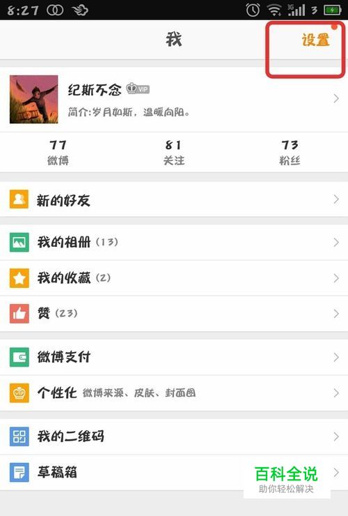 出现个人信息,点击右上角的”设置“。