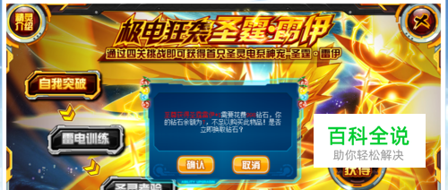 点击后,经过四个关卡{自我突破,雷电训练,圣灵考验,终极试炼}即可得到圣霆雷伊。