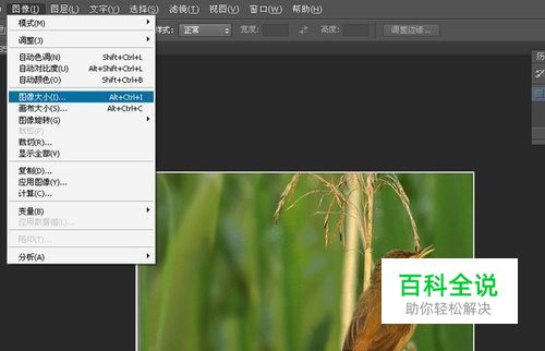 2.我们选择“图像”》“图像大小”打开图像大小设置框,然后我们选定“重置图像”,然后在插值里选择“两次立方(适用于平滑渐变)”,这时再把像素的宽与高的单位换成“百分比”,那么只需要设置高与宽的数值是150(继放大50倍)即可。