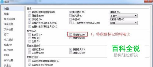 勾选段落标记,再点击确定。段落标记便在文档中显示出来。