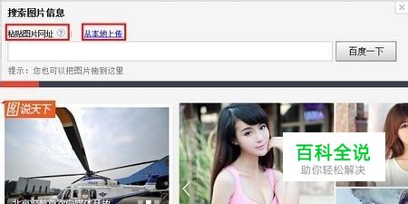 在弹出的搜索图片信息对话框中,可以看到有两种图片搜索方式,一种是直接粘贴图片网址,另一种是从本地上传你已经存有的图片。