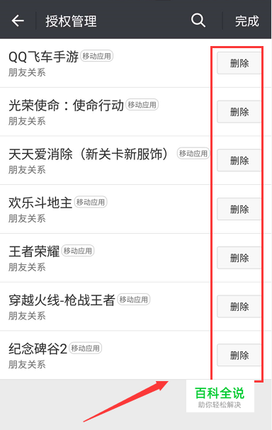 所有授权应用出现删除按钮,点击删除即可取消微信的授权,如下图所示