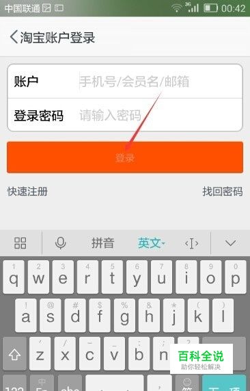 在淘宝账户登录界面上,输入淘宝帐号和登录密码,然后点击登录,如下图所示。