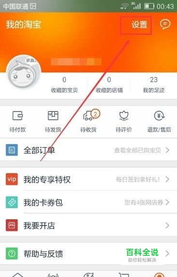 成功登录淘宝后,进入我的淘宝页面,此时点击我的淘宝右上角的设置按钮,如下图所示。