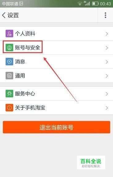 在淘宝设置界面里,我们可以找到帐号与安全,点击进入查看淘宝登录设备,如下图所示。