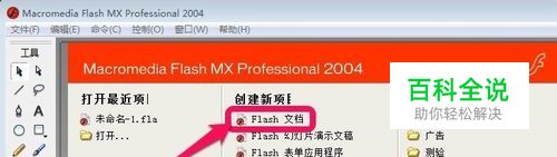 首先打开FLASH动画软件,当然这里可以新建一个FLASH文档。