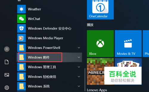 弹出的界面,我们下滑中间的界面,然后我们找到windows附件,然后我们点击打开它;