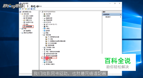 首先我们要打开管理资源器,我们找到网卡驱动,也就是网络适配器,我们来检查驱动是否正常运行,右键“属性”,我们看到是正常的。