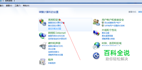 找到控制面板的系统与安全,点击进入,一般在左侧的第一序列。