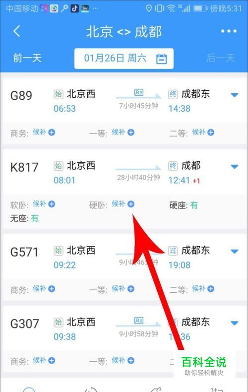 查看想要乘坐的车次时发现没有票了,此时点击席位右侧的“候补”,此候补需求便会自动添加至右下角的“候补下单”列表中