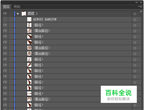 首先打开AI软件,这里我们打开一个做好图层的字体,把有需要的图层留下,有编组的先右键取消编组。