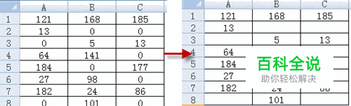 excel数值为0不显示方法一: 如下图所示,我们想要将excel单元格里面的0不显示出来,如右图所示。