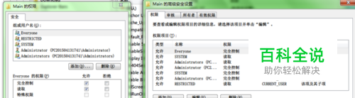 弹出窗口中,勾选完全控制权限,并点击高级按钮,勾选“包括可从该对象的父项继承权限”和“使用可从此对象继承的权限替换所有子对象权限”