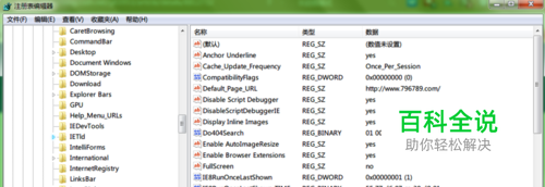 定位到弹出错误提示的注册表路径,懒蛇这里打开的是HKEY_CURRENT_USER\Software\Microsoft\Internet Explorer\Main。
