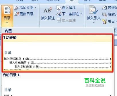 选择【自动目录1】鼠标点击即可