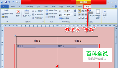 打开Word表格,我们先使用鼠标 选中需要改变内容位置的单元格,再点击主菜单 ”表格工具“中的 ”布局“选项。如图所示: