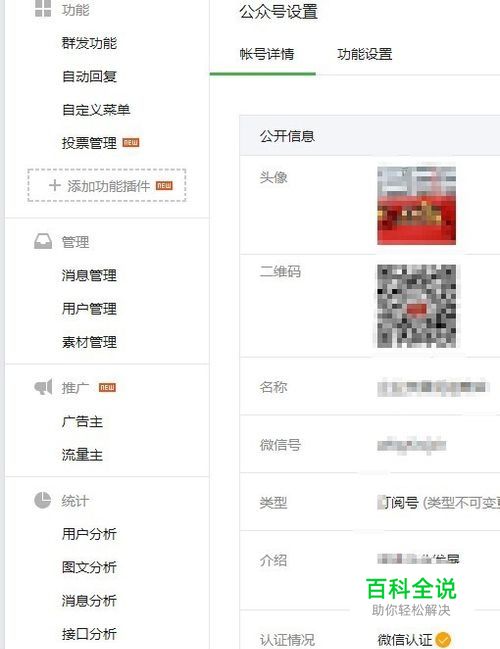 选择左边栏的公众号设置