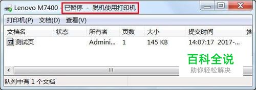 2、如果出现,已暂停或脱机使用等,可以点击“打印机”将暂停打印及脱机使用打印机前面的勾去掉。