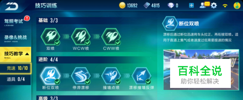 这个技巧在飞车里也有教学,训练选项里就有各种技巧都有。