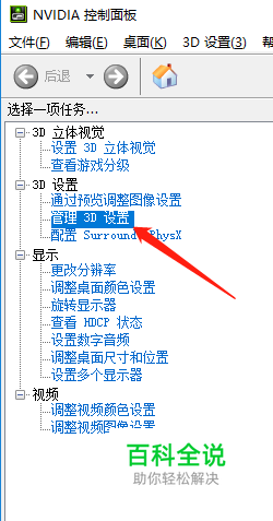 在左侧找到“管理3D设置”