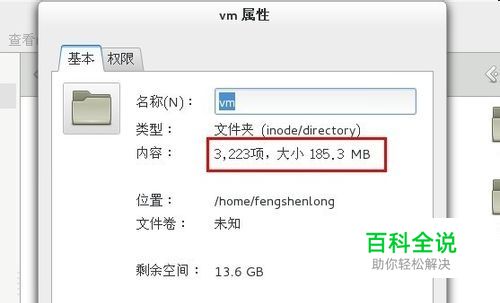首先我们先来看最简单的方法,这种方法只是适用于有图形界面的linux操作系统,例如fedora操作系统。右击我们需要查看文件夹,然后点击属性选项,在弹出的属性框中找到内容所在一行,会列出此文件夹有多少项和其大小(如下图红线标注处所示)。