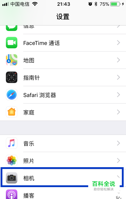 向下滑动,找到“相机”菜单,进入下图界面。