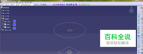 打开CATIA,选择>开始>机械设计>创成式曲面设计,进入主界面,创建一个平面,并以平面为草图参考面,创建一个圆,以xy平面为参考面一个正方形,如下图所示;