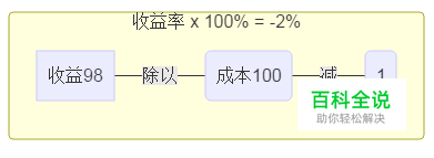 当收益 < 成本,我们的收益率是负数,也称为负收益率。 股票是最常见的出现负收益的例子。下面的例子可以称作收益率-2%,或者负收益率2%
