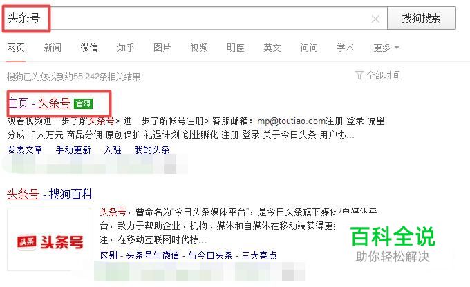 首先,我们打开我们电脑上面的浏览器,然后我们在里面输入头条号,这个就是今日头条,然后我们按回车键,弹出的界面,我们点击图示中网站;
