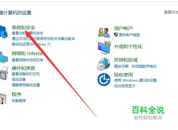 打开电脑的控制面板,进入之后点击“系统和安全”,进入下一页面,如图所示。