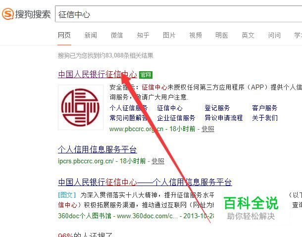 在搜索位置搜索“征信中心”官网,点击并进入,如图所示。
