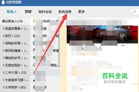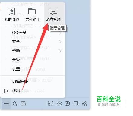 打开电脑,登录自己的QQ,找到“消息管理”,点击并进入,如图所示。