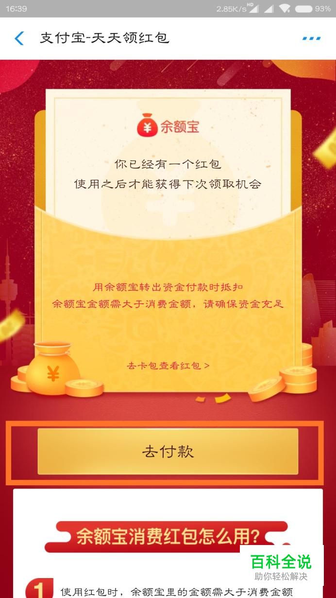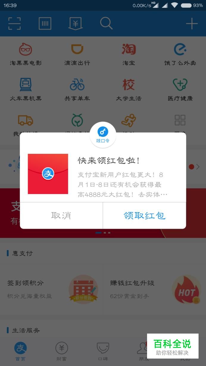 打开支付宝,如果可以的话还能领一个小红包。