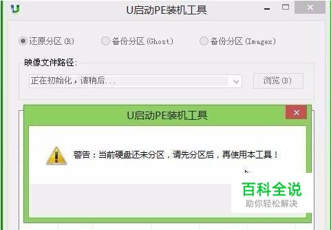 将u盘启动盘插在电脑usb接口,重启电脑后直接自动进入win8pe系统,弹出硬盘未分区的提醒框,先点击确定,如图: