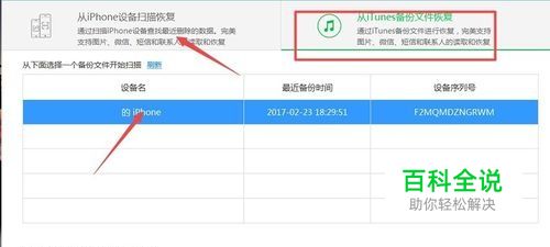 选择“从iTunes备份文件恢复”,将会自动检测设备数据,然后点击“开始扫描”,也可以选择“从iPhone设备扫描恢复”选择连接在电脑上的手机设备,点击开始扫描。