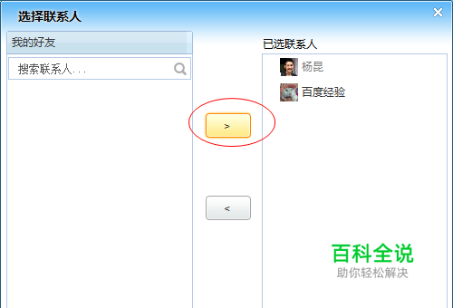 在左侧选中好友并点击中间的添加按钮将好友添加到邀请列表中,并点击右下角的确定按钮即可,如图所示: