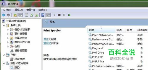 管理->服务和应用程序->服务->找到Print Spooler (XP为Spooler)先停止服务。
