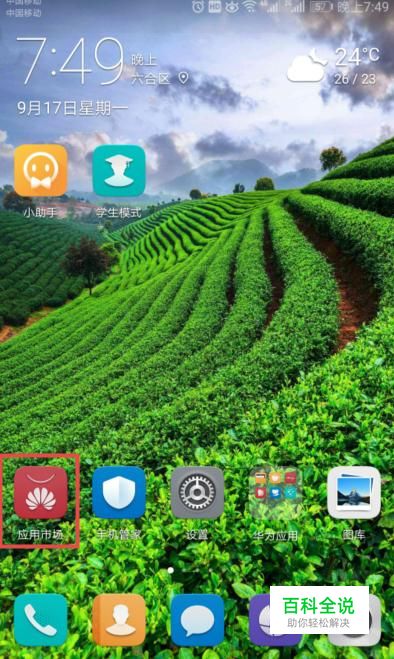 首先,我们打开我们的手机,然后我们点击应用市场;