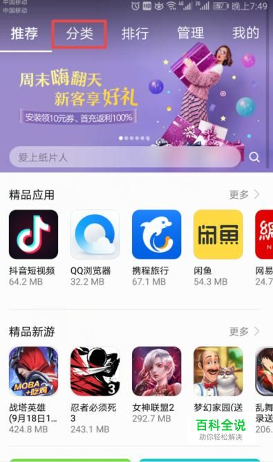 弹出的界面,我们点击分类;
