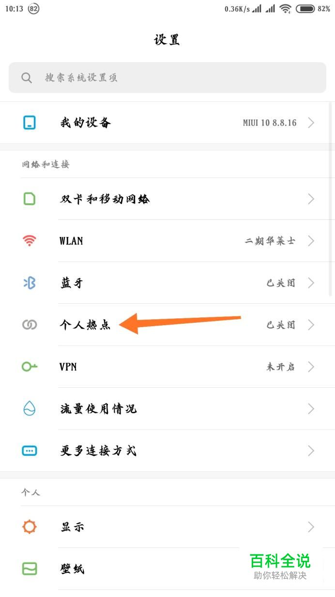 打开小米手机4的系统设置,在“网络与连接”里面找到“个人热点”,点击进入。