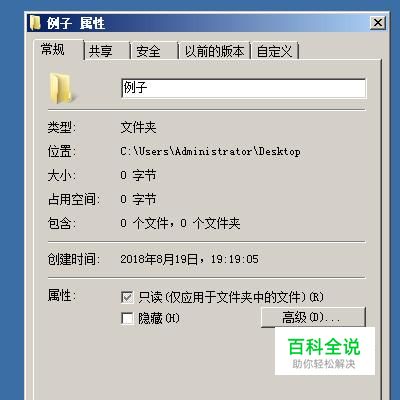 勾选“隐藏”后,再点确定。 这时,我们再回到电脑桌面上,“例子”这个文件夹即看不见了。