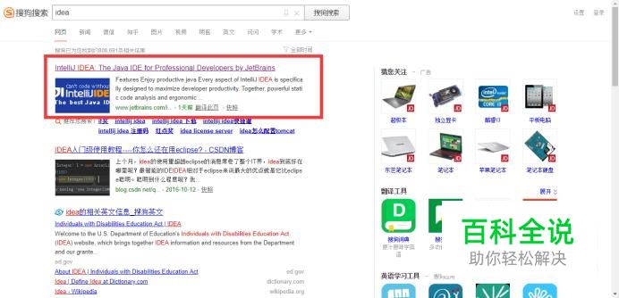搜狗搜索idea,进入idea官网。如图,第一个便是idea的官网。