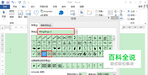 有些符号不常用,但是一但要使用,到处找都难找,问人也不一定找得到,就如:要在Word中使用一个小框框里的打勾(对)呀打叉(错)的一个小符号,打开档找呀找的,问了一个又一个同事都无有知道的,急得要命,下面小编将告诉你那个符号在哪里。 选取符号的步骤如下: 一、打开文档点击”插入“,右边”符号“ 二、在符号框的字体是选择“Wingdings 2“滑动滚动条即可找到选定”插入“ 三、在下面我们可以看到已插入的对错小框框符号。