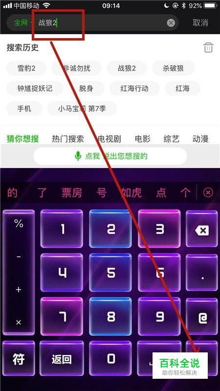 然后输入我们想要观看的影片名称并点击搜索,如下图所示。