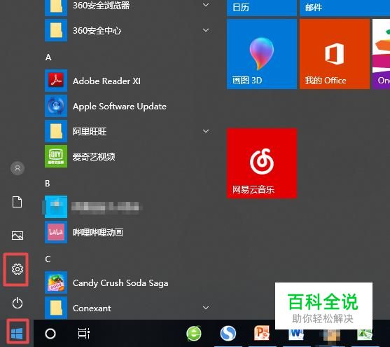笔记本上不了网往往是由于我们的设置上面出现了错误导致的,我们点击左下角的微软按钮,弹出的界面,我们点击设置;