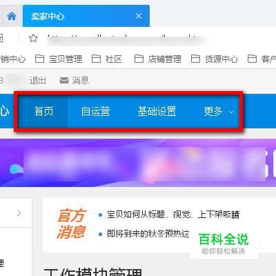 看卖家中心页面的上方,这里有一排菜单。点击:基础设置